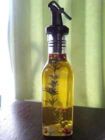 ローズマリーとニンニク、ピンクペッパーで フレーバーオイルを作りま