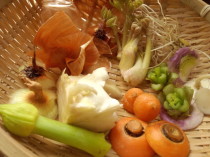 お野菜の端っこでブロス(だし)作りました。 根っこや皮、葉っぱが生